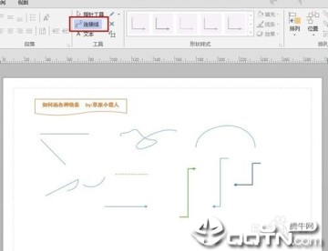 在绘图区域,我们选中自己的线条,上方区域有个线条的样式,这里面是可以修改自己刚刚所画线条的样式,小编这里选择几个样式。