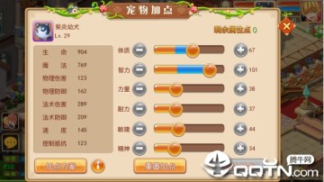 加点永远是不可忽略的一部分,宠物的加点同样如此。宠物的加点属性分别是体质、智力、力量、耐力、速度、精神。其中体质会影响气血、法术防御;智力会影响法术伤害、法术预防、魔法;力量会影响物理伤害、法术防御;耐力会影响物理防御、法术防御;敏捷会影响速度;精神会影响法术防御、魔法、控制抵抗、控制命中、治疗强度。