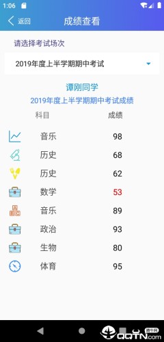 成绩查看:随时了解孩子考试成绩,支持横向纵向对比,成绩升降一目了然。
