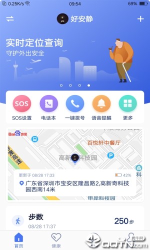 颐相伴app是颐相伴硬件手机配套应用,软件可以帮助精准定位,可以查看计步、心率、血压等,还可以管理老人设备通讯录,是一款智慧养老助手。