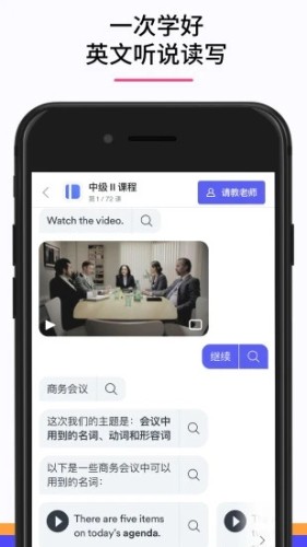 学习主题包含职场、旅游、生活英语,还有精心设计的影片和幽默动画。