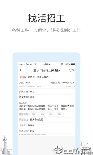 中国建筑劳务智慧平台开拓者,立足移动互联网,服务广大农民工和劳务包工头,为其提供建筑劳务一站式服务平台。