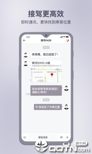 3.接驾高效:即时通讯,更快找到乘客位置。