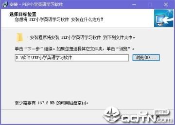 1、在本站下载PEP小学英语学习软件,解压之后双击.exe,出现一个“选择目标位置”的界面,这里建议将文件安装在D盘,点击“下一步”继续