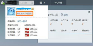 鼠标移动到账号名上,会自动显示个人名片,输入个性签名。