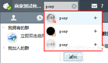 搜索框内输入好友ID,点击查找,出现淘宝账号和贸易通账号,选择正确的账号类型,点击好友旁“+” 完成。