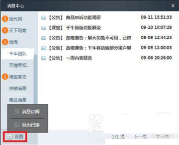 进入千牛PC版:消息中心--设置,即可根据自己的需要,自定义订阅交易、退款、商品的系统消息和资讯类信息。