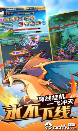 2、BOSS战:在原有道馆基础上,推陈更旧,增加了多人互动玩法,每一个野外都会出现强力BOSS,每一个时间都会世界BOSS发生,使游戏变更加紧张和激烈。
