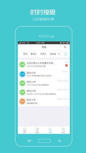由阳光智园科技有限公司制作。用户可直接浏览学校、公告、订单等信息,同时直接接受工作消息;