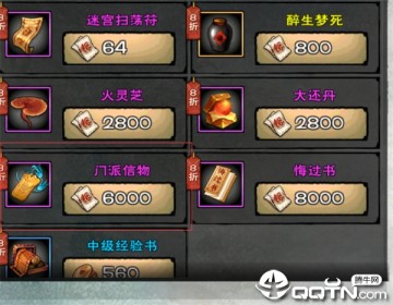 上图就是珍品商铺的所有道具内容了。除了经验书,其余道具价格偏贵,但是用处很大,也不容易在其它的内容玩法中获得。举例来说:门派信物是退门派必须的道具,而悔过书是可以让少侠重回之前退过的门派,这两样道具暂时只能在珍品商铺获得,可见其珍贵。