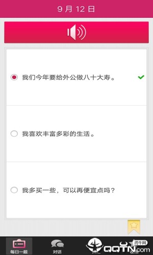 1.每日一题:每天更新一句日常生活实用粤语,听语音分辨句子。