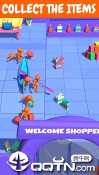 人类疯狂购物是一款即时竞技游戏,多名玩家控制角色在同一个商场里,不同的商品对应不同的分数,玩家控制角色去抢夺这些稀有的高分商品,积攒分数,可以约上好友,来一场趣味的友谊战。