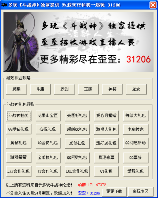 多玩斗战神小助手并不是一款游戏辅助,只是为各位玩家整理了各职业的游戏攻略和礼包领取页面,以上所有资料都来自于多玩斗战神论坛,希望对大家有帮助。