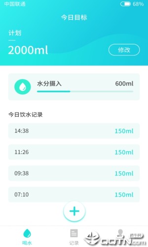 它可以设置每天喝水的目标,记录每一次喝水的水量。