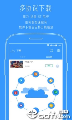 4.下载支持http、ftp等多种协议,连接服务器加速功能,下载视频媒体文件后可以万能播放,各色好片随便播。