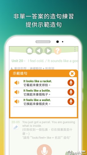课程由浅至深,每单元有名师精编的学习讲义,多元题型引导用户依知识核心做造句练习,