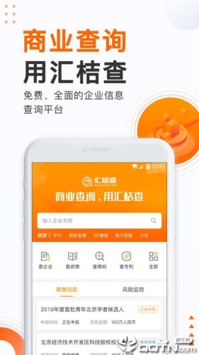 汇桔查app,整合知识产权行业数据,提供企业信息/知产信息查询(企业、商标、专利、版权、域名)、高新科技项目查询、智能体检(知商值检测、企业体检报告)等商业查询,快速,高效,权威。