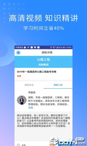 一建公路工程视频app下载,一款边练边学的备考助力平台,来一建公路工程视频app不仅有精品课程视频可以反复看,还有直播课堂名师指导解惑,有需要就来下载!