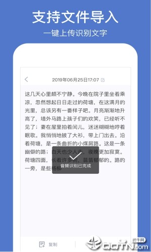 它支持实时录音,实时识别,不仅能够记录下您的声音,更可以将您说的文字实时转录出来。它还支持将录音文件转为文字。是您办公的好助手。