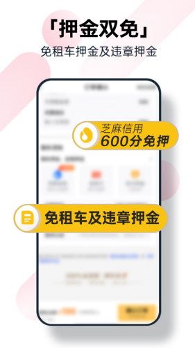 绑卡或芝麻分600分及以上,享受租车预授权+违章押金双重免押服务