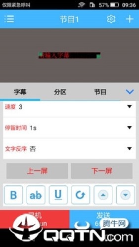本软件为LED显示屏控制卡内容编辑软件,通过该软件可简单编辑显示屏显示内容,并通过WiFi发送给控制卡!