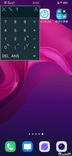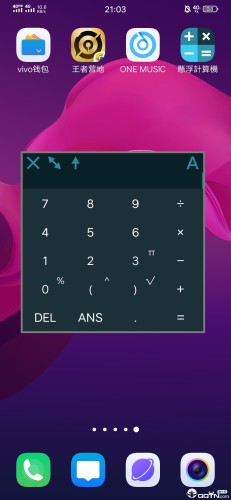 悬浮计算器支持界面任意扩大,简单的加减乘除、开根号、π计算、括号和百分计算!