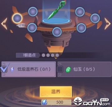 温养法宝:温养是通过消耗一定数目的温养石或是仙玉来提升法宝基础属性的强化方法。每次温养,或是解锁新的温养点,都不一定是达到某一温养点最大的温养值。