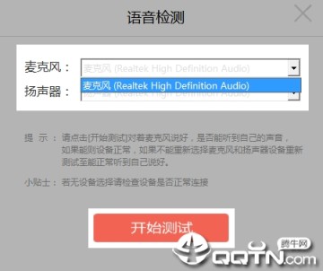 登录完成后进入课程列表界面,选择左上角:系统>声音,打开声音测试,点击“开始测试”,对着麦克风说话,验证是否能听到自己声音,如果能则设备正常,如果不能重新选择麦克风和扬声器设备,点击“开始测试”,直至能听到自己的声音