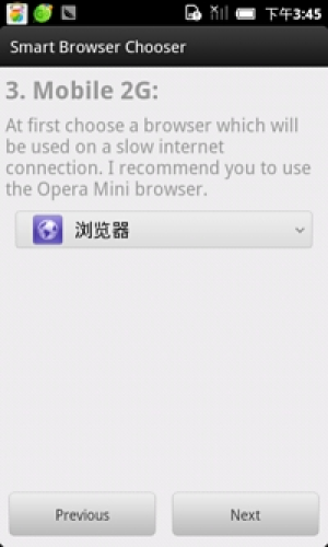 智能浏览器选择器Smart Browser Choosers是一款能够设置哪个手机网络状态使用哪个手机浏览器的工具,比如手机在WIFI状态下使用QQ手机浏览器,3G网络状态时候使用UC浏览器,这些设置好了,手机就能够智能帮我们完成选择的工作!手机多浏览器的就比较方便了。