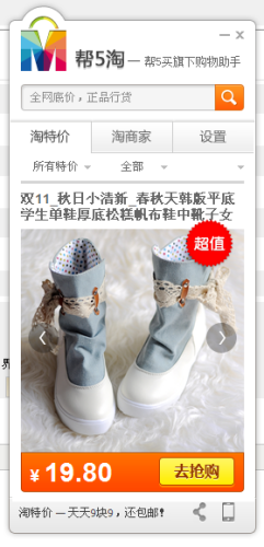 只要点击您商品图标上的帮5淘按钮,就可以迅速为您推荐同款产品的最低价商家。