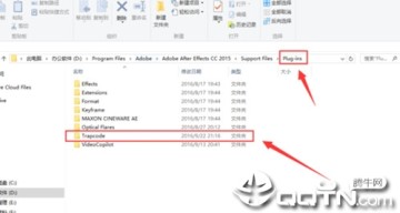 3、已经打包好的Trapcode文件,直接复制到Plug-ins目录下面,复制进去就代表安装,就代表安装成功了。找到自己的AE安装路径,主要找到装特效文件的文件夹,他的位置是:X:Adobe After Effects CC 2015/Support Files/Plug-ins,“X”是代表你个人的安装盘路径,举例:我的AE安装路径是:D:Program Files/Adobe/Adobe After Effects CC 2015/Support Files/Plug-ins