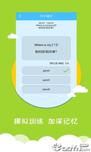 7、单词填空:选择填写单词中漏掉的字母,单词拼写练习,强化单词拼写记忆。