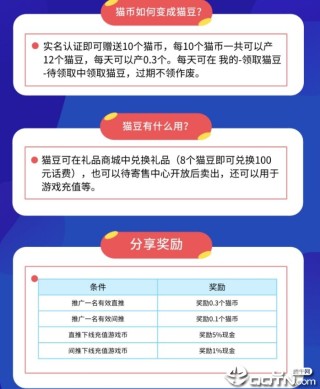 猫豆可在礼品商城中兑换礼品(8个猫豆即可兑换100元话费),也可以待寄售中心开放后卖出,还可以用于游戏充值等。