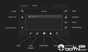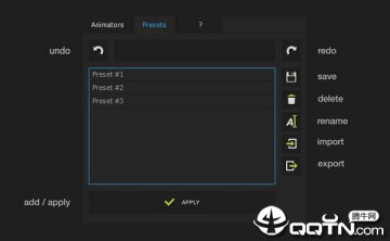 - “ 预设”选项卡可让您管理动画:您可以保存,删除,重命名,导出和导入动画。