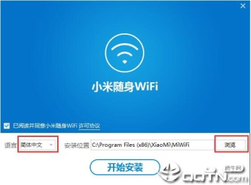 1、在本站下载小米wifi软件,在电脑本地得到一个压缩包,使用360压缩软件解压后,双击.exe文件进入小米随身wifi安装界面,您可以对点击【开始安装】,软件会自动安装。或者您可以点击【浏览】,在弹出的安装位置界面,你可以自己选择小米随身wifi安装位置,选择完成后点击【开始安装】就可以了。