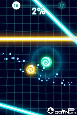 旋转控制球球应对迎面而来的激光,测测你极限的反应吧! 玩法简单,游戏画面为科幻游戏画风,非常绚丽漂亮,游戏节奏到后期越来越 快,100+的级别,没有一定的反应不要尝试,游戏中充满了趣味的动感节奏, 并且考验个人手速,还有丰富的皮肤共你选择,配合bgm开始旋转,你就是这条 街最靓的仔!