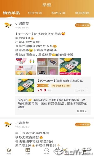 蜂淘app,为您打造的一款购省钱类平台,在此不仅可以找到质量高价格优惠的商品,还有各种商品的优惠券供大家领取,可在淘宝天猫店铺中使用哦!
