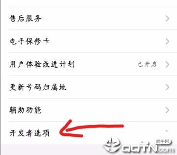 3、点击开发者选项。