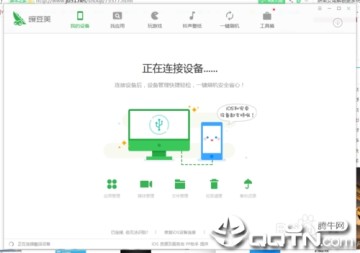 1、打开电脑端豌豆荚会显示如图指示,将手机与电脑通过数据线连接。