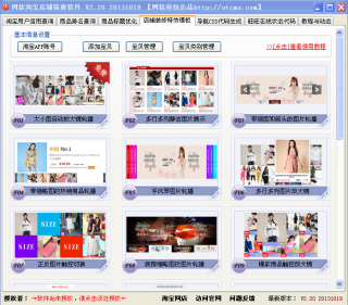 网钛淘宝店铺装修软件是一款淘宝店铺装修工具,能够自己动手对店面进行修改,其功能有店铺装修特效模板、旺旺在线状态代码、淘宝用户信用查询、导航CSS代码生成等。