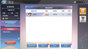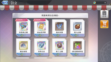 点击公会信息界面点击“商店”按钮可进入公会商店,消耗公会贡献可以购买各种珍贵道具,不要错过喔!