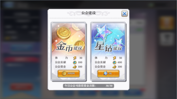 公会建设分为金币建设和星钻建设,选择星钻建设可以获得更多的体力和公会贡献。