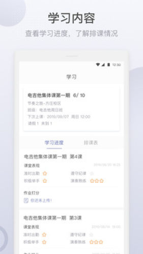 《哆来学-学生端》是一款针对在音乐培训机构学习的学员或学员家长使用的软件,