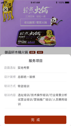 -贴心指导服务:为保证用户的体验,我们提供1对1指导服务,随时解决你的创业难题,帮助你轻松创业。