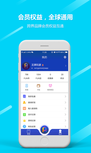 会员可以在王牌玩家APP及全球合作品牌中享受会员权益的互通使用。