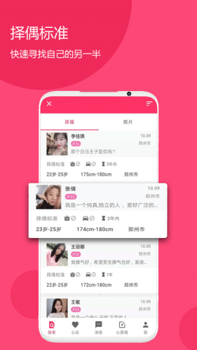 下载珍爱网手机客户端86.4M8951人在玩珍爱网手机客户端是由珍爱网官方打造,为广大珍爱网会员用户打造一个随时随地寻找幸福的平台。采用身份认证+个人资料审核双保证,独创自助沟通+电话红娘的高效婚配服务模式,将幸福握在你手中。