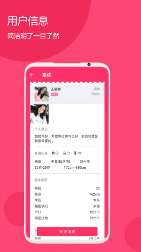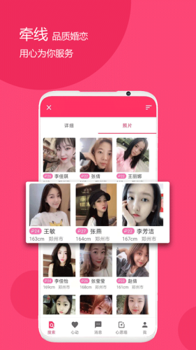 牵线是一款实名认证的相亲软件、页面简洁明了让你可以快速的