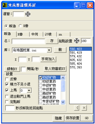 选择脚本:库中是采集脚本库,点击选择你要的路径脚本,也可以自己制作路径脚本后面会说明。