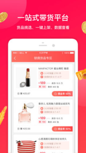 1.优质货品精选:大牌专区、寄样商品专区、高佣金商品专区