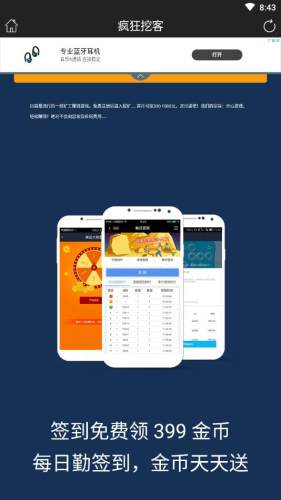 疯狂挖客,注册并登陆获得1088金币,邀请一人奖励1088金币。每1个金币可雇佣1个矿工挖矿,矿工挖出钻石可以兑换变现,100钻石=1元,邀请好友越多收益更多。